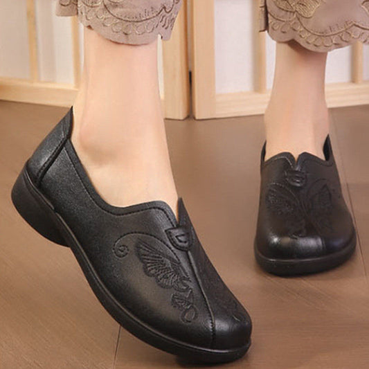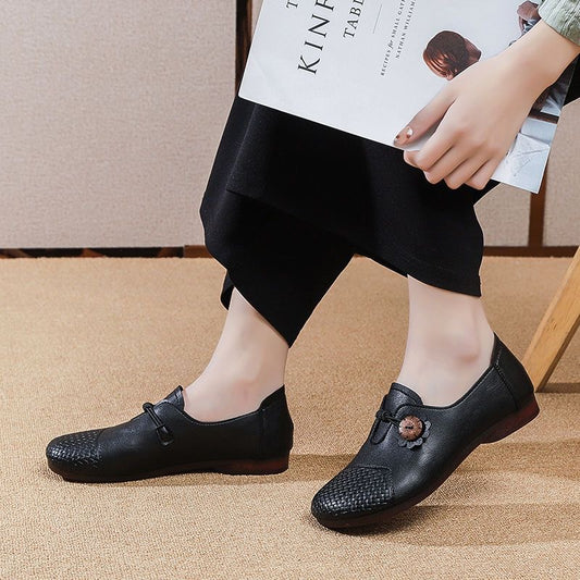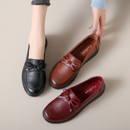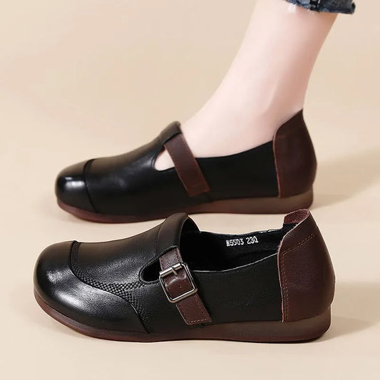 Zapatos cómodos de piel suave con punta redonda