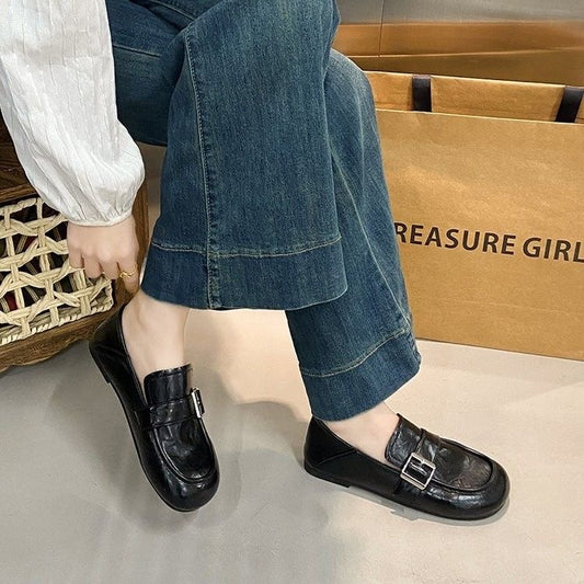 Zapatos de cuero con hebilla y punta redonda